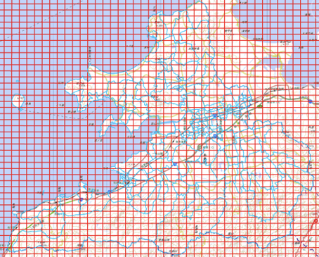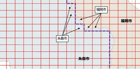 - 行政区域境付近のメッシュ